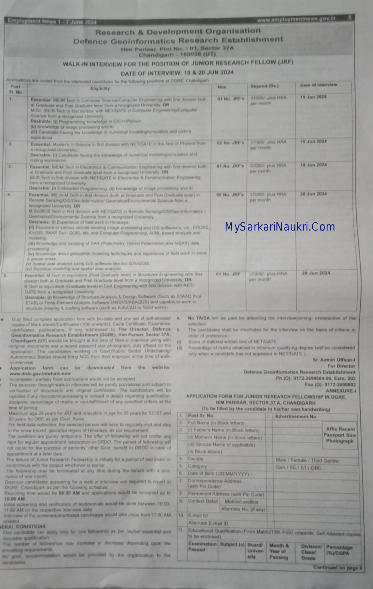 DGRE Junior Research Fellow (JRF) Recruitment 2024
