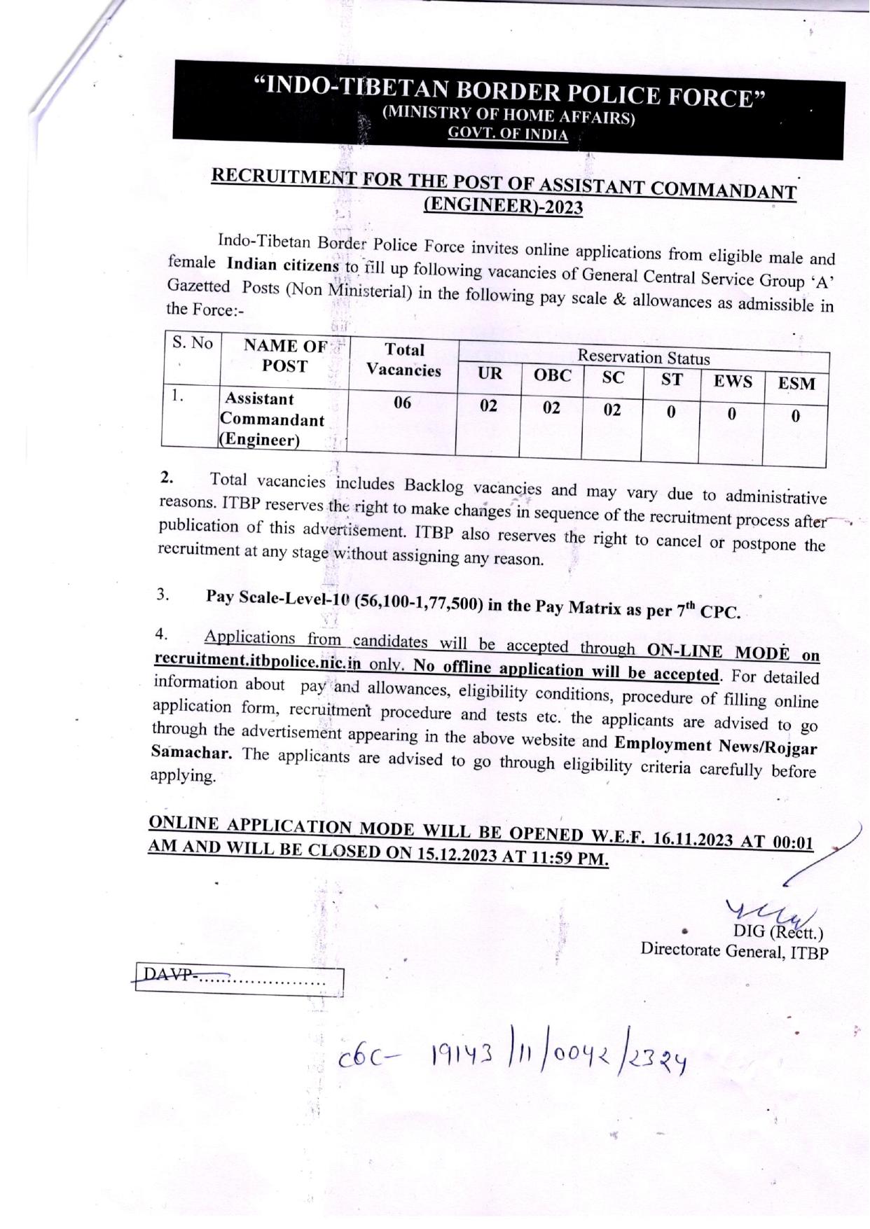 ITBP Assistant Commandant (Engineer) Recruitment 2023