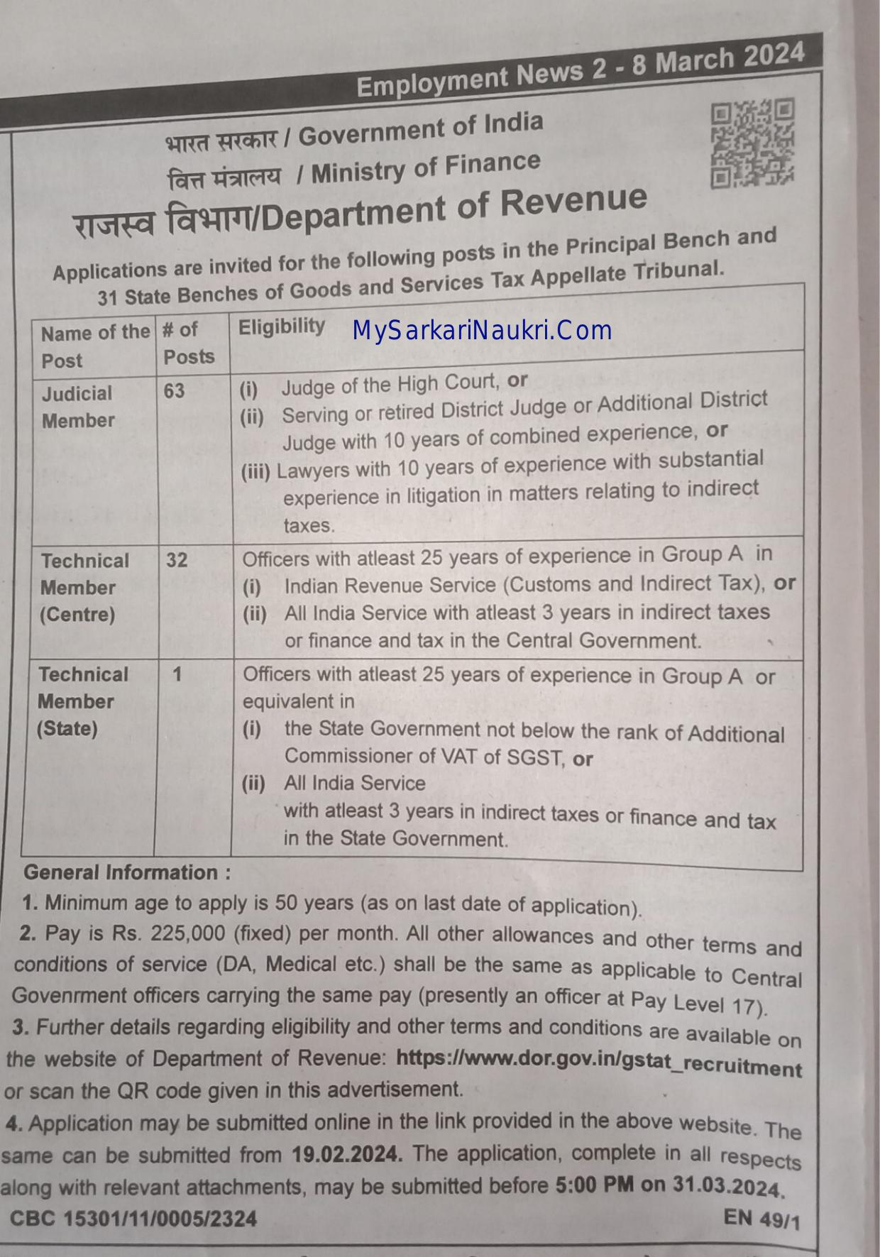 - Department of Revenue Judicial Member, Technical Member Recruitment 2024
