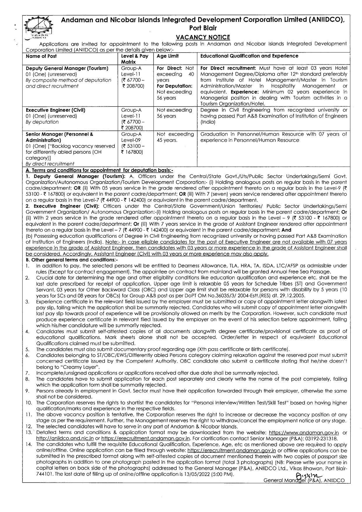 ANIIDCO Invites Application for Senior Manager, Executive Engineer and Deputy General Manager Recruitment 2022