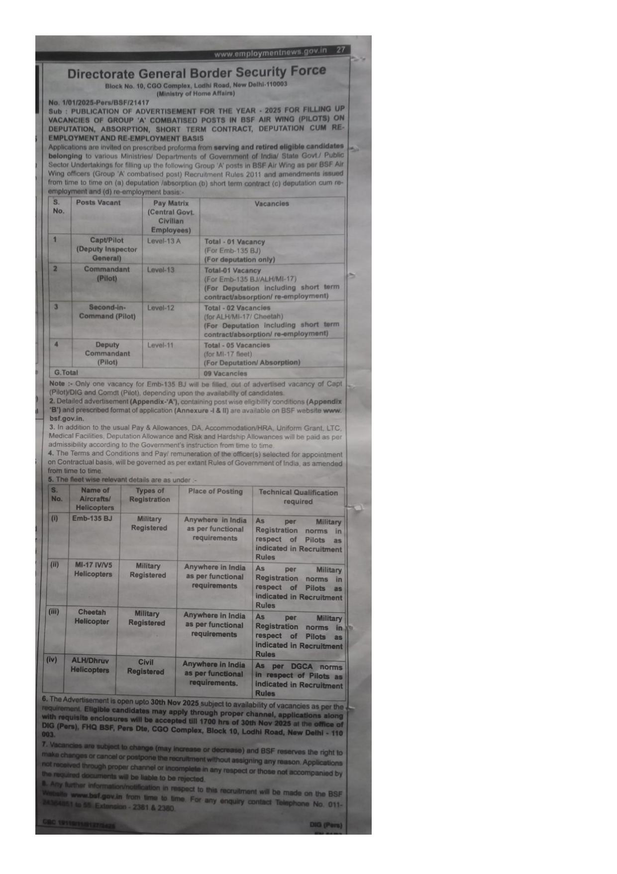 - Border Security Force (BSF) Commandant and Various Posts Recruitment 2025