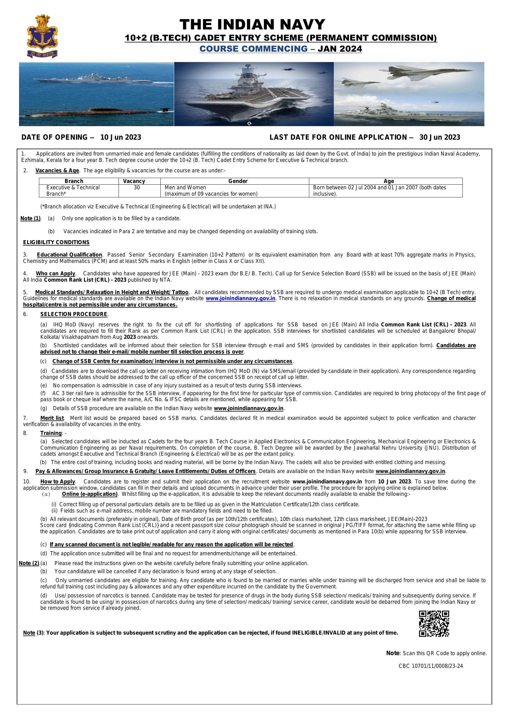 Indian Navy Executive & Technical Branch Post Recruitment 2023
