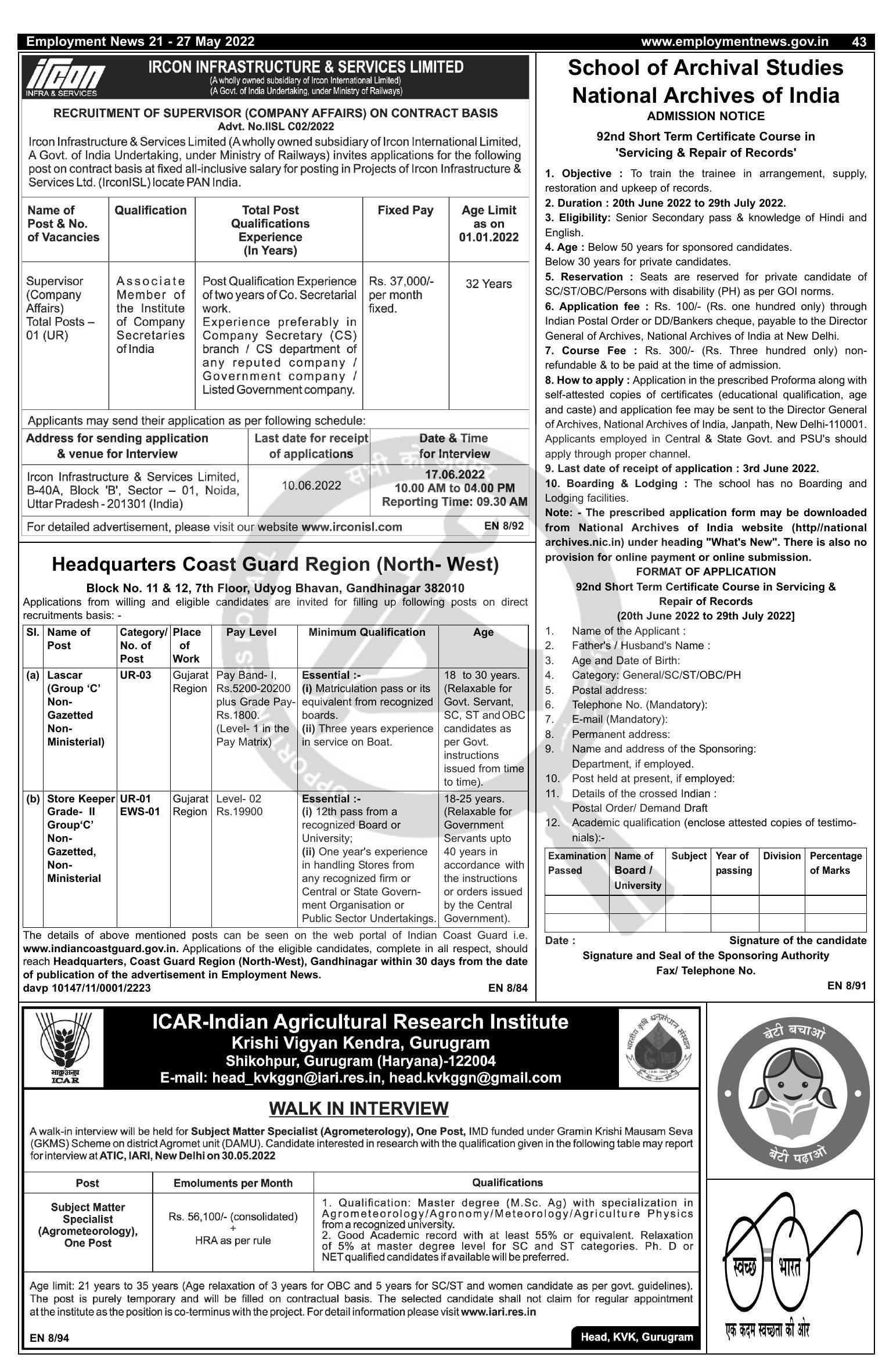 Indian Coast Guard (IGC) Lascar, Store Keeper Recruitment 2022