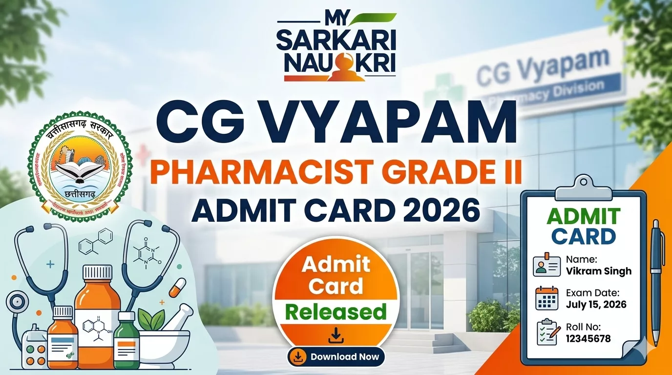 Download CG Vyapam Pharmacist Grade II Admit Card 2026 released on 6 April. Check exam date, center, and instructions at vyapamcg.cgstate.gov.in.