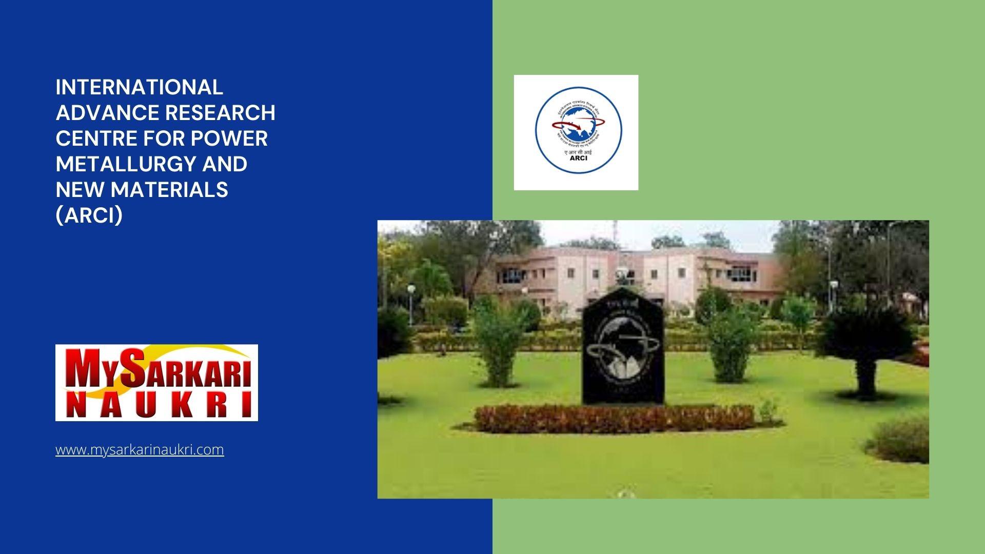 International Advance Research Centre for Power Metallurgy and New Materials (ARCI) Recruitment