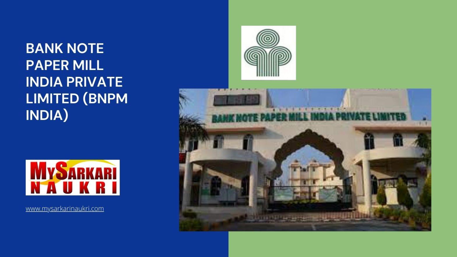 Bank Note Paper Mill India Private Limited (BNPM India) Recruitment