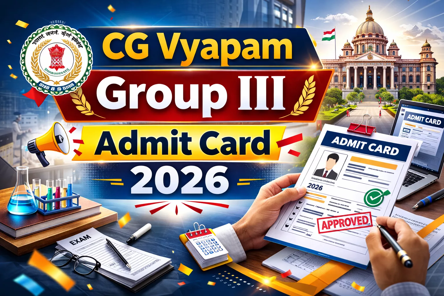 The Chhattisgarh Professional Examination Board (CG Vyapam) has released the CG Vyapam Group III Admit Card 2026 on 23 February 2026. Candidates who have registered for the Group III recruitment can download their hall tickets from the official website vyapamcg.cgstate.gov.in. The written examination is scheduled to be conducted on 01 March 2026 at various centers across Chhattisgarh.