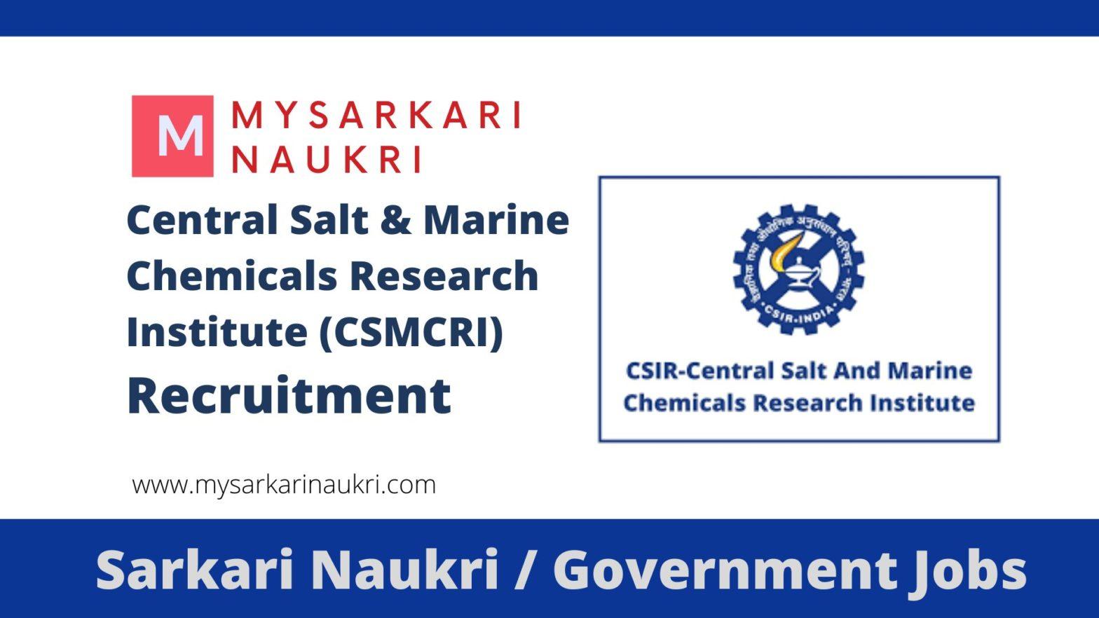 Central Salt & Marine Chemicals Research Institute (CSMCRI) Recruitment