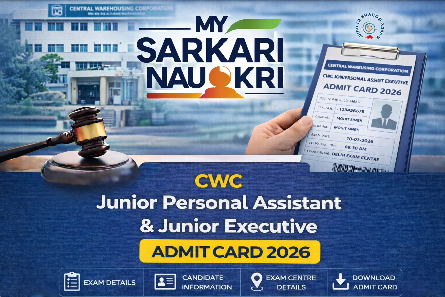 CWC Junior Personal Assistant and Junior Executive Admit Card 2026 Released – Download Now