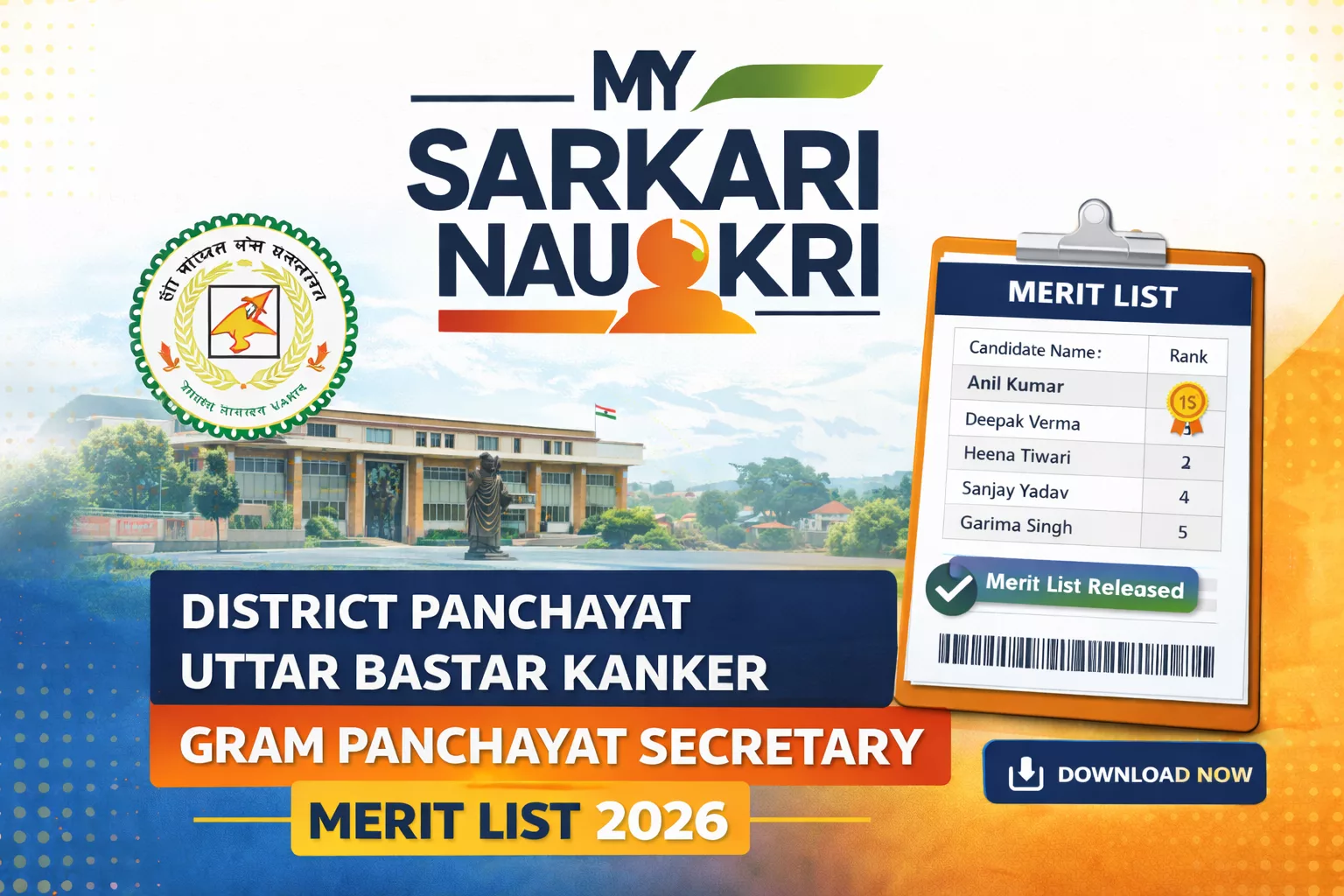 Are you waiting for District Panchayat Uttar Bastar Kanker Gram Panchayat Secretary Final Merit List 2026? Great news! The Office of the District Panchayat, North Bastar Kanker has officially published the Final Merit List for Gram Panchayat Secretary (Panchayat Karmi) posts on 5th April 2026. Candidates who appeared in the recruitment process can now check their selection status online.
