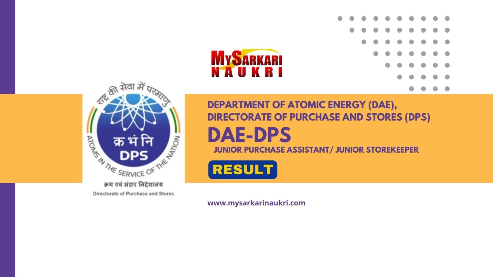 The Department of Atomic Energy (DAE) Result 2024 is on the verge of release, sparking excitement among candidates who took the exam on February 4th, 2024. As the Department of Atomic Energy (DAE), through the Directorate of Purchase and Stores (DPS), gears up to unveil the merit list, candidates eagerly await their rankings. Being included in the DPS DAE Result 2024 merit list signifies candidates’ outstanding performance and places them in a favorable position for the selection process for Group C โ Junior Purchase Assistant/Junior Storekeeper roles in Mumbai.