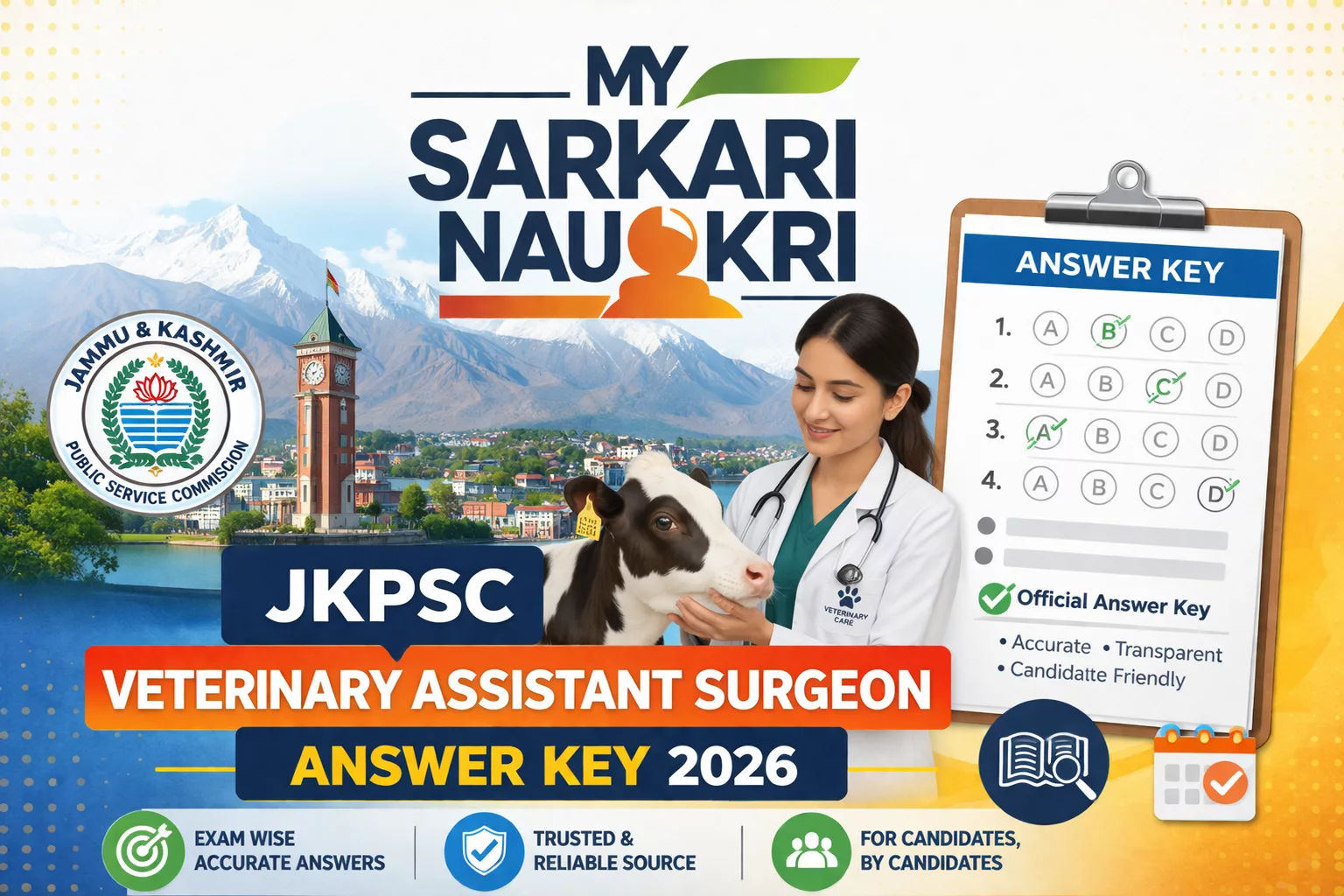 The Jammu and Kashmir Public Service Commission (JKPSC) has officially released the Veterinary Assistant Surgeon Answer Key 2026. Candidates who appeared for the examination conducted on 5th April 2026 can now access the provisional answer key on the official website jkpsc.nic.in. This answer key allows candidates to evaluate their performance and estimate their scores before the final results are declared.