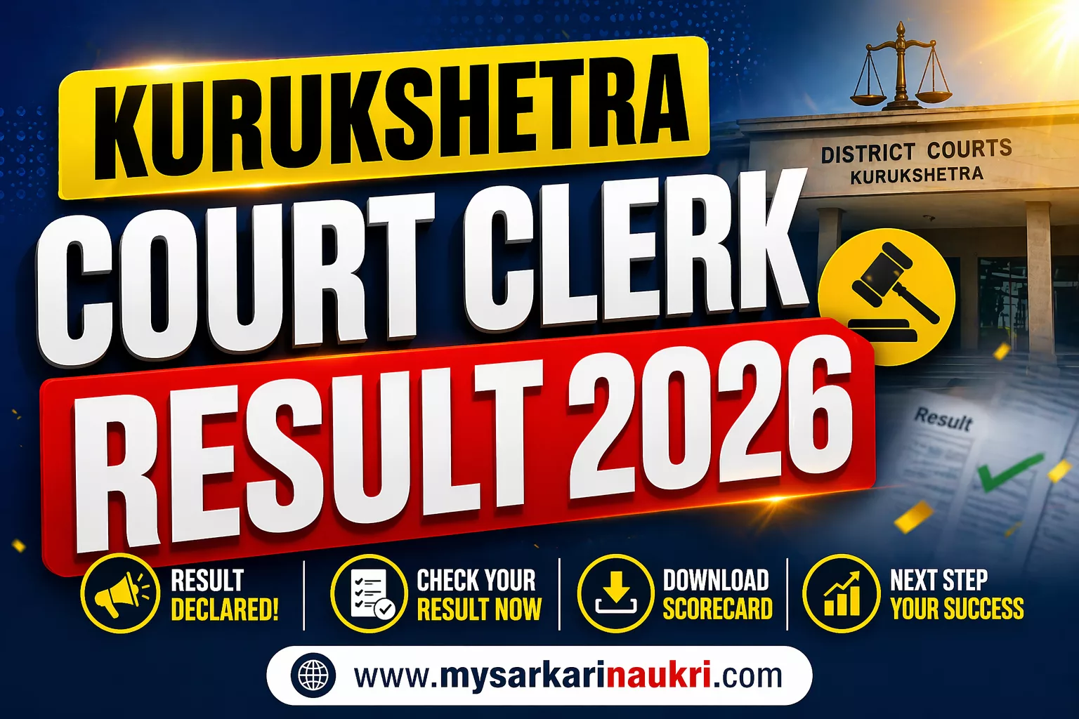 Kurukshetra Court Clerk Result 2026 has been declared. District and Sessions Judge, Kurukshetra released the written examination result for Clerk posts on 21 April 2026. Candidates who appeared for the exam held on 22 March 2026 can now check their qualifying status and download the scorecard.