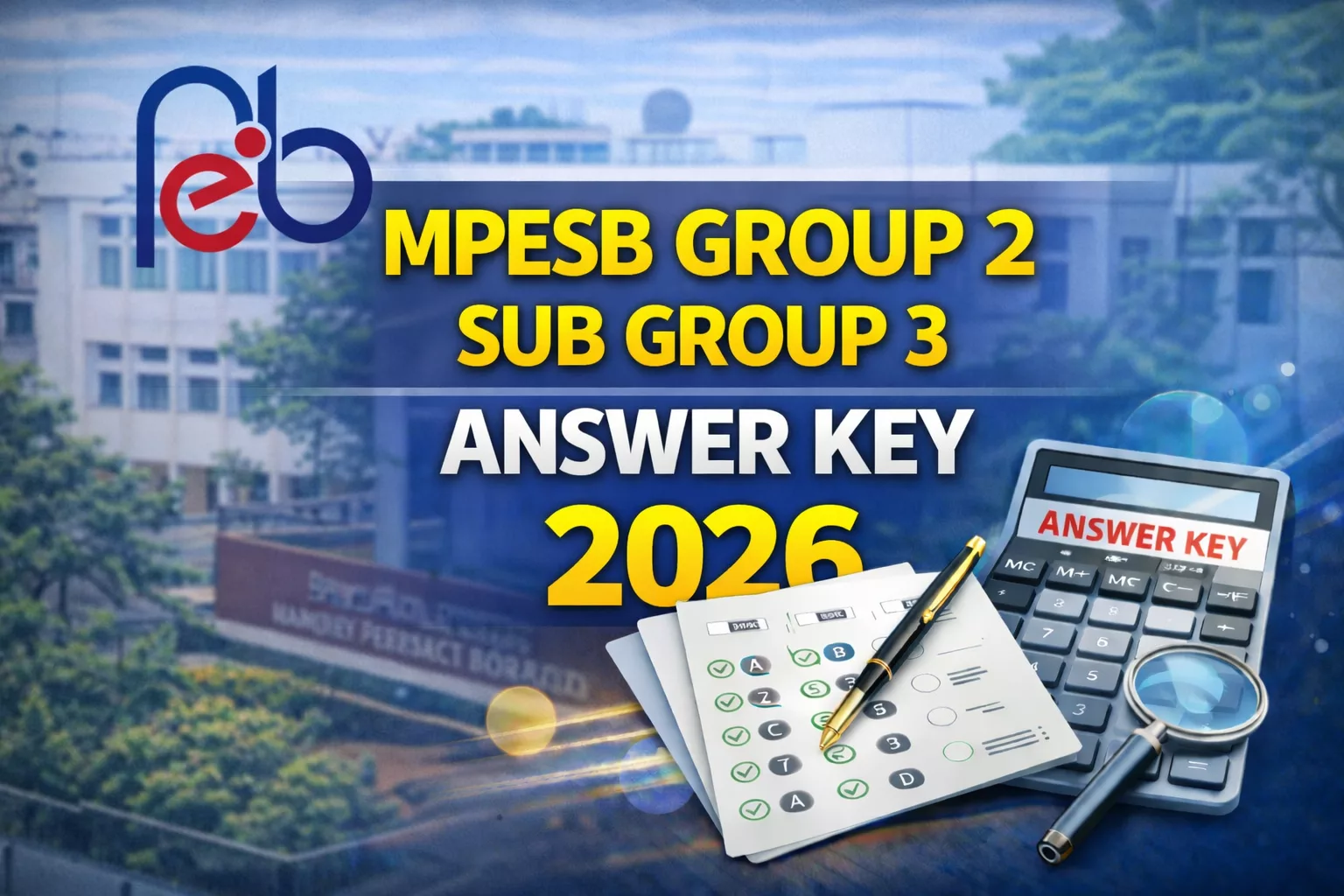 The Madhya Pradesh Employees Selection Board (MPESB) has released the Group 2 Sub Group 3 Answer Key 2026. Candidates who appeared for the Group 2 Sub Group 3 examination held on 28 January 2026 to 06 February 2026 can now check and download the provisional answer key from the official website esb.mp.gov.in. This recruitment drive aims to fill 454 vacancies. If you find any discrepancy in the answers, you can raise objections before 12 February 2026.