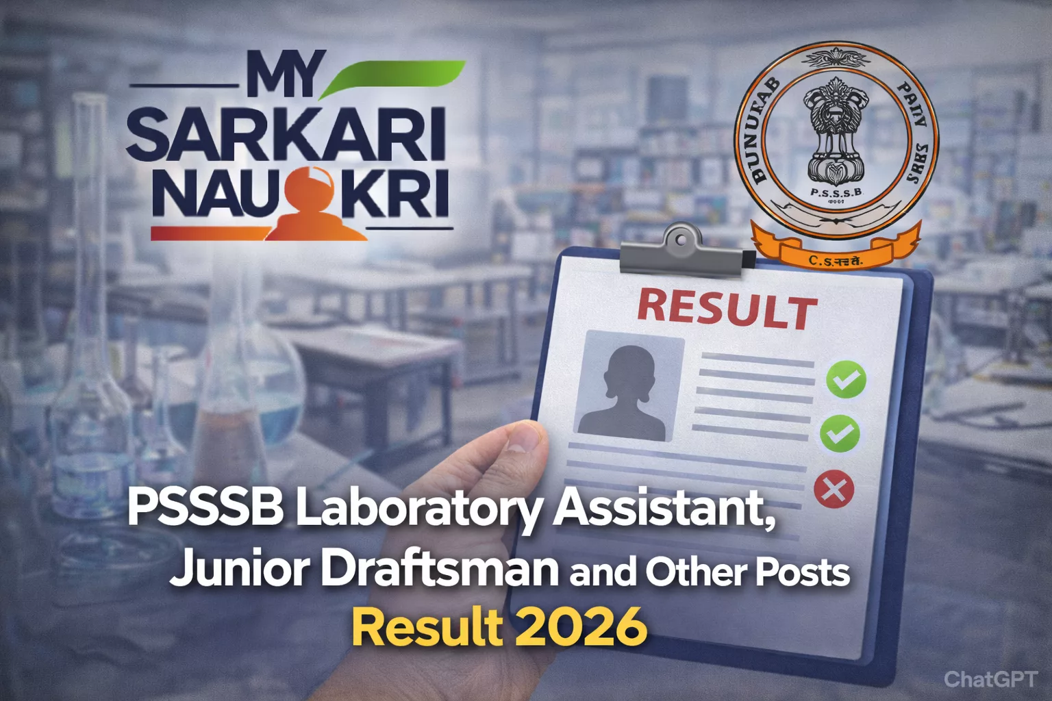 The PSSSB Result for Laboratory Assistant, Junior Draftsman, and other posts was declared on 16 February 2026.