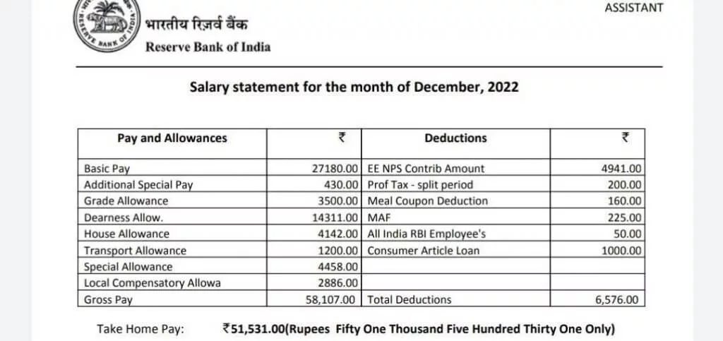 RBI Assistant Salary Slip