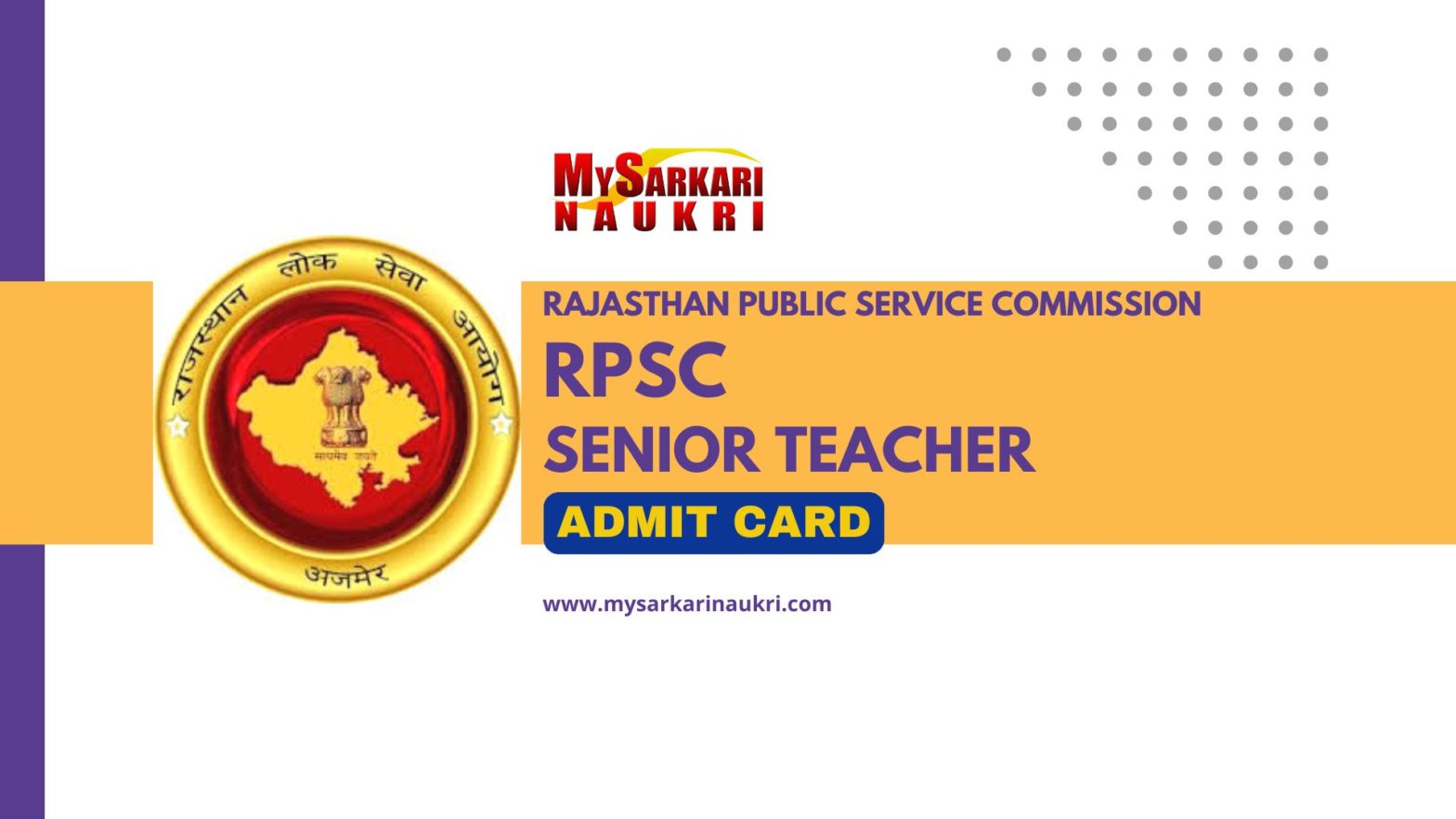 RPSC Senior Teacher Admit Card 2024 Download Link
