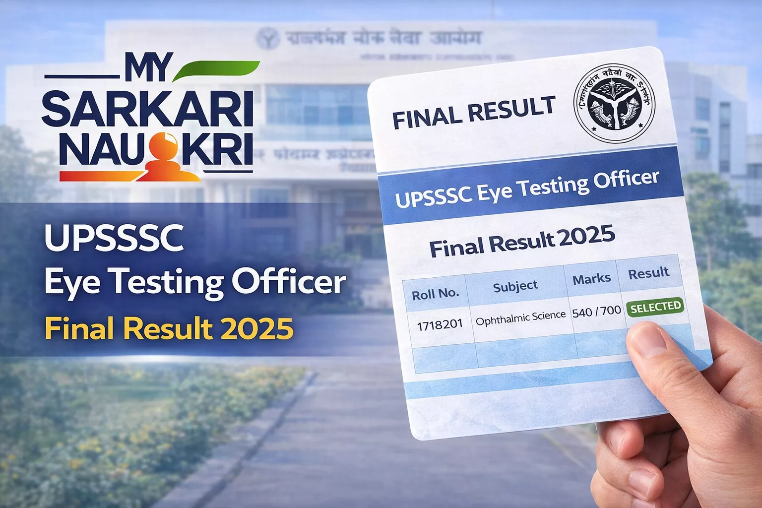 UPSSSC Eye Testing Officer Final Result 2025 OUT – Download Scorecard @upsssc.gov.in 2026