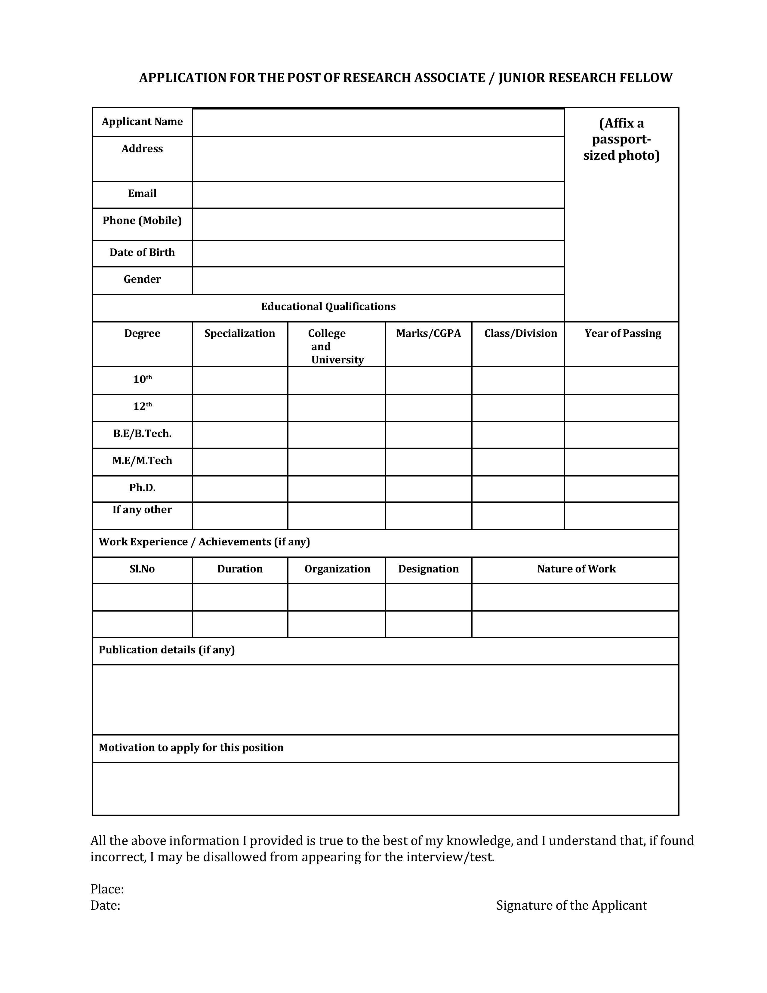 | Post Name(s) | Research Associate, Junior Research Fellow |
